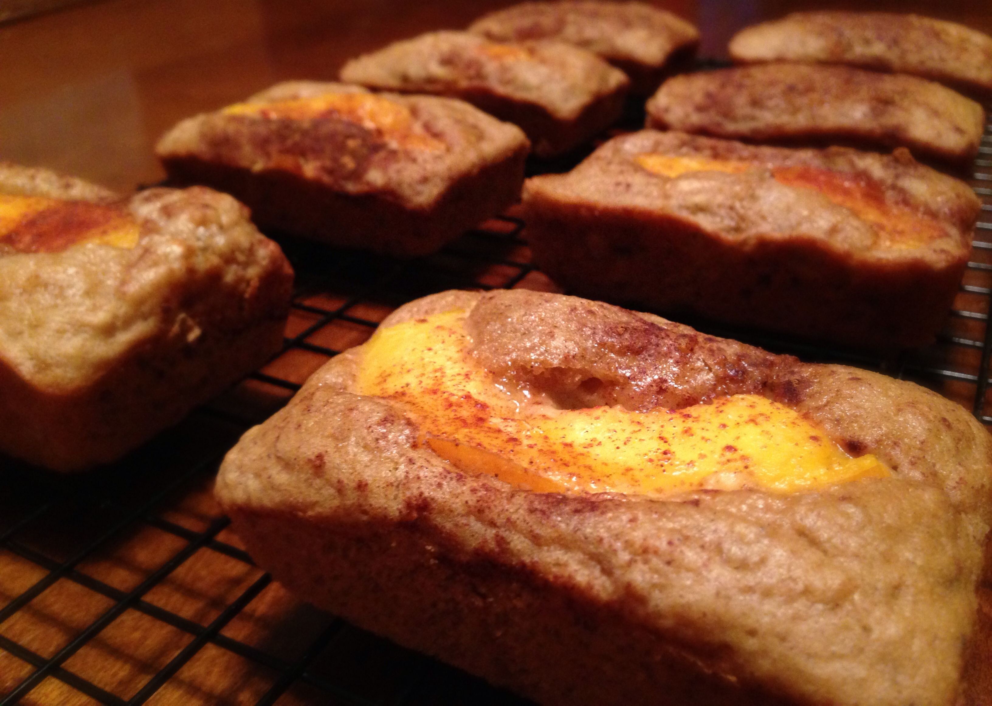 It’s peach season, so I’ve been trying to take advantage of the fresh peaches available!! They are soooo good on their own, but why not use them in baking and cooking too? I always have some bananas that need to be used, so I found this awesome recipe on Ambitious Kitchen that combines all of these great ingredients I had laying around! Mmmm, mmm, good!