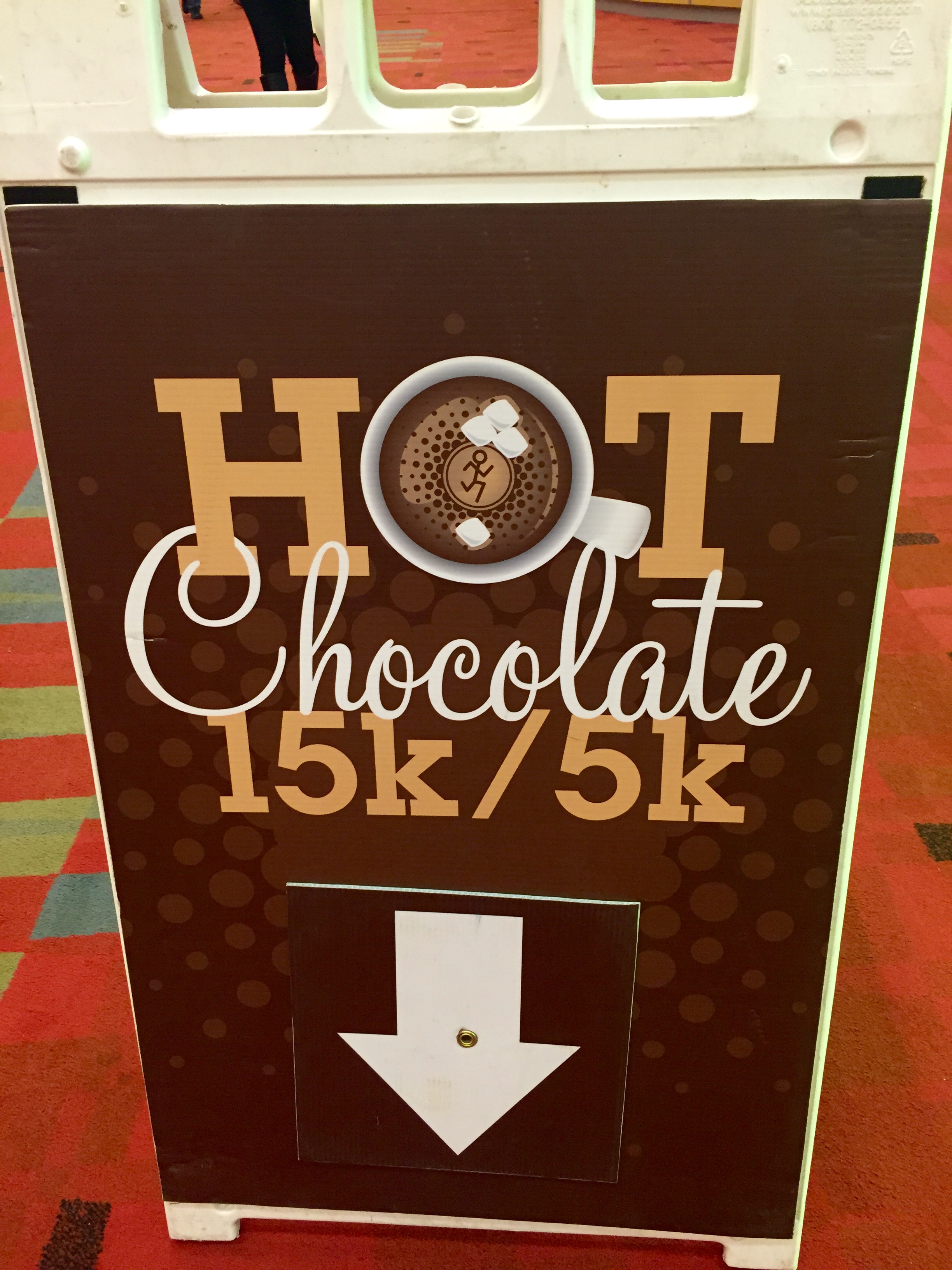 Aside from the bone chilling cold, and the hill at mile 7 that I thought might kill me – this was a precious race! They had chocolate chip stops, people handing out tootsie rolls, and chocolate marshmallows along the way. I was too busy trying not to die and get a drink of water or gatorade at the stops to enjoy the chocolate. After the race, they served everyone a chocolate fondue bowl with melted chocolate and bananas, marshmallows and cookies for dipping with a cup of hot chocolate in the middle! Nowwwww – I gave up sweets this month, so you’ll be happy to hear that I did not partake in any of the fondue, BUT I did drink the hot chocolate because it was freakin’ freezing out there!