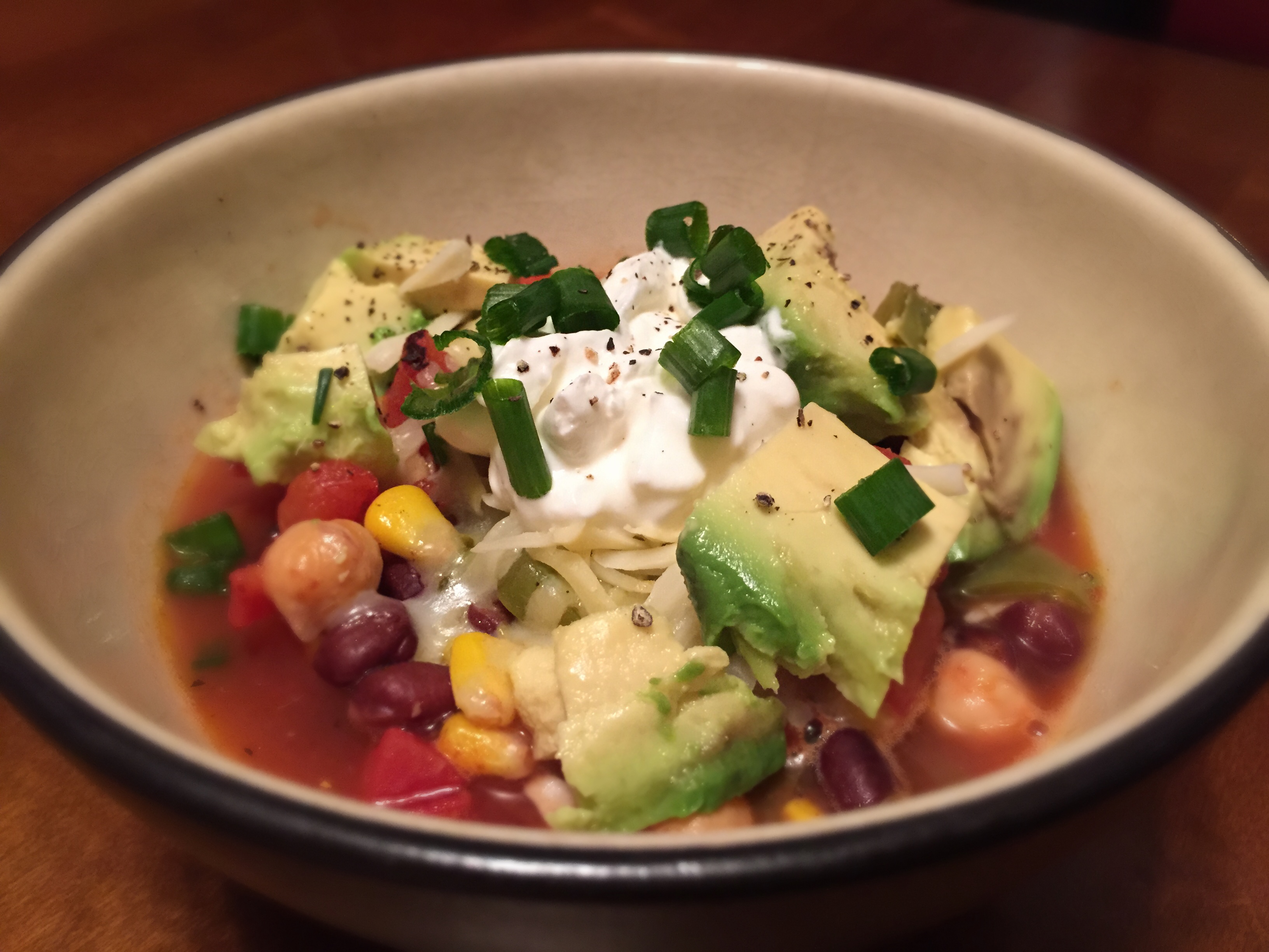 So, last year during the Super Bowl, I ran errands. I’m going to let my secret out – it is THE BEST time to run errands because NO ONE is out!! You can literally walk in wherever and get anything you want and check out. No lines, no wait, no hassle. Boom. Brilliant. Now, if the Cowboys had been playing…I’m sure it would have been a different story, but this year since my team wasn’t in the Bowl, I ran errands, got a pedicure, and made this amazing chili. I couldn’t wait to post it because you guys HAVE to try this guy out! I was so excited that I forgot to add my cilantro to the top, but honestly – I didn’t even miss it. You know what else I didn’t miss? MEAT. I’m a carnivore, but this veggie chili was so good and packed with protein I didn’t even miss the meat.