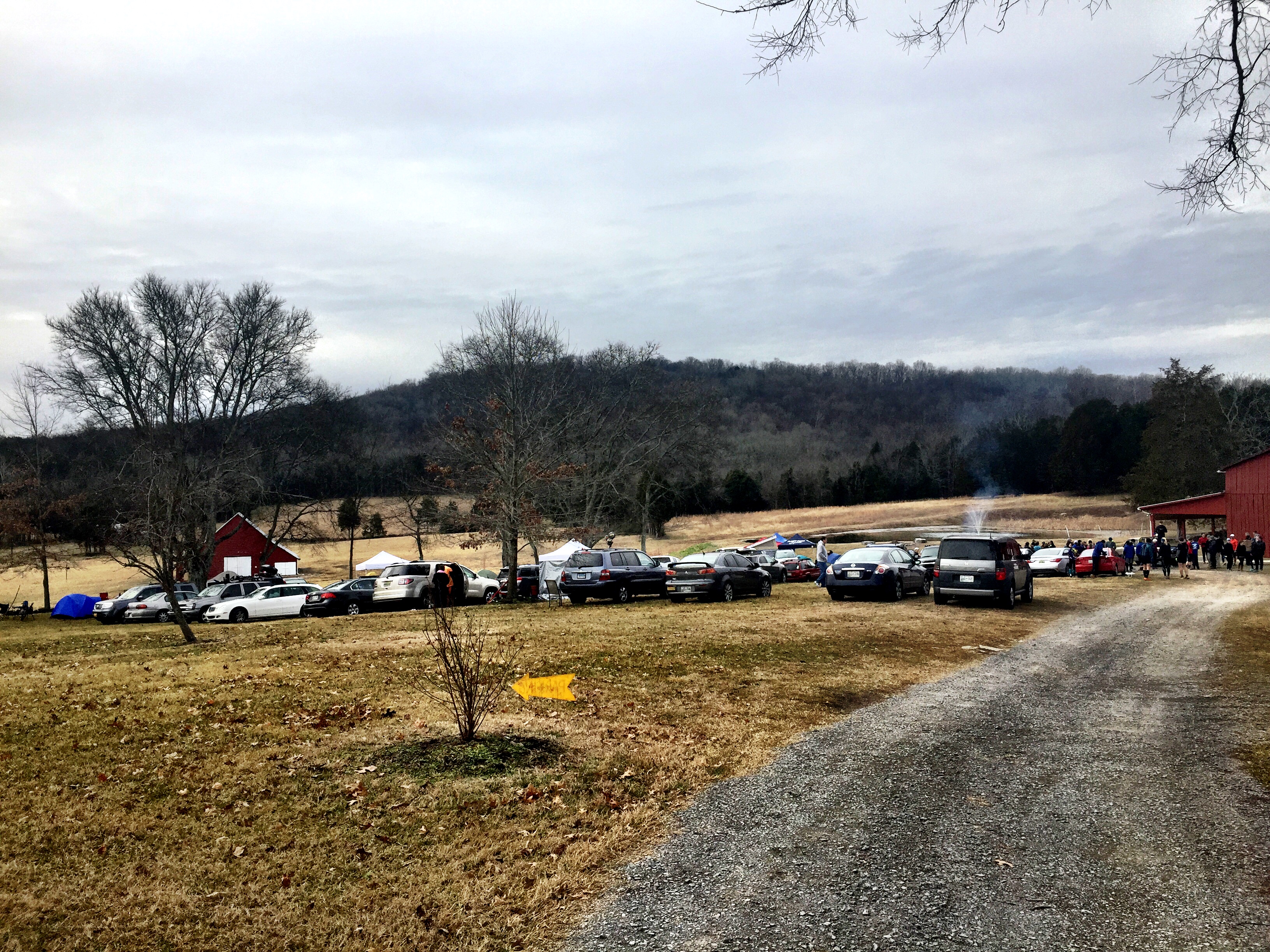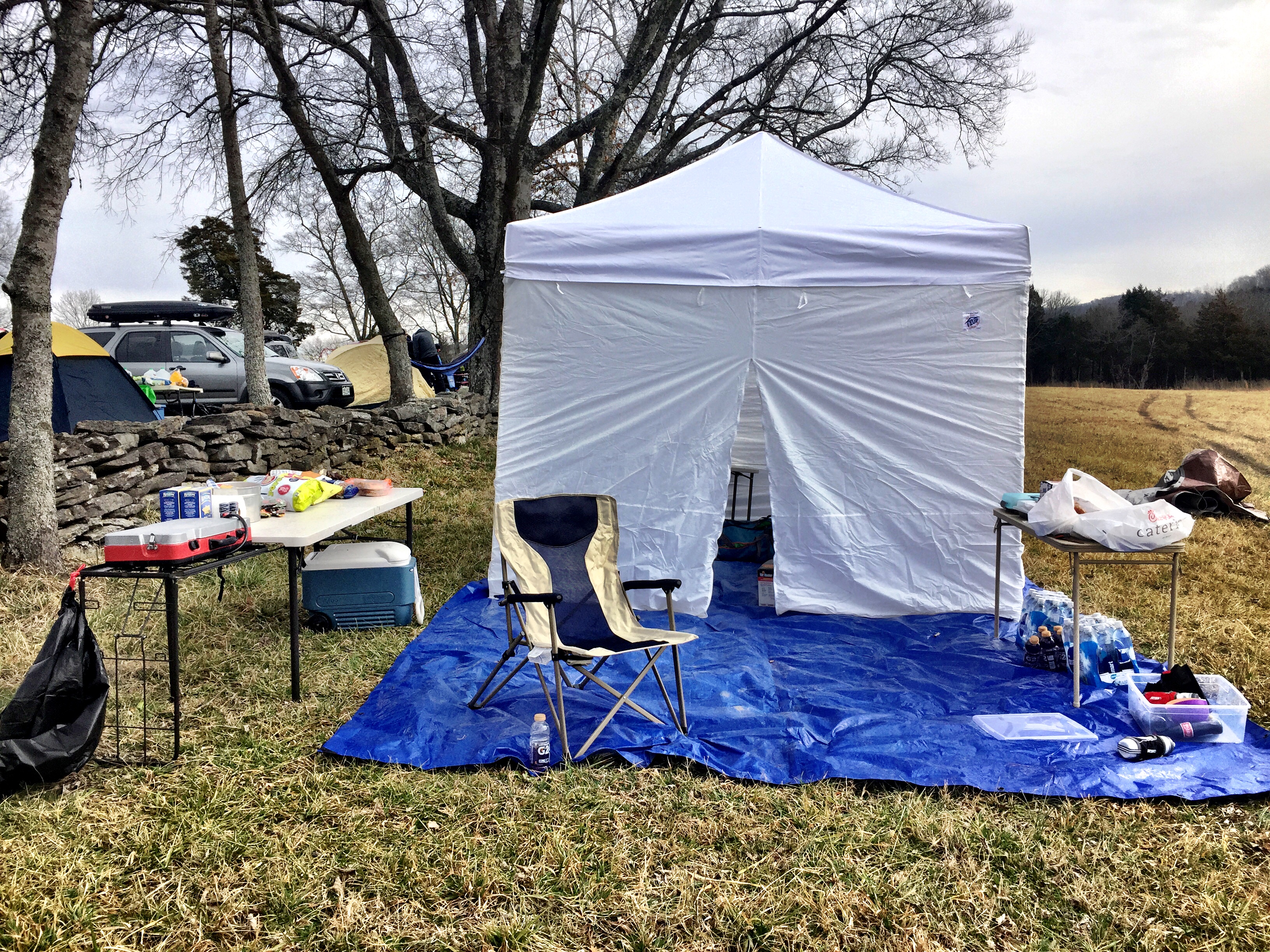 This race is held in Watertown, TN, which is about an hour out of Nashville pretty much in the boonies, but it’s awesome. It always ends up being on a cold, winter day after it’s rained a bit so the course is slick and muddy and awesome. For this race – you can do it solo, have a 2 person team or a 4 person team, and you run a 5 mile trail over and over. For us, it’s nice – you run and then you get about 2.5-3 hour break before running again while your teammates run. So, basically you change clothes, eat whatever you can find, and hang out with friends while your teammates run. This is the Taj Mahal…
