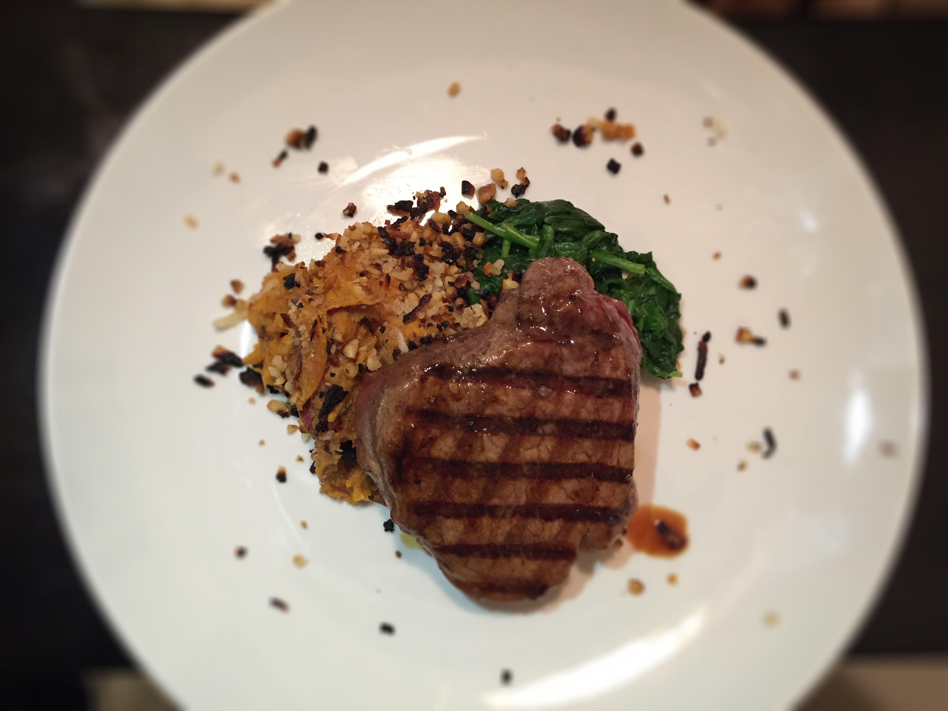 Tonight’s dinner was pretty rockin’. Noah picked up some filets when were at Trader Joe’s, and I haven’t had steak in FOREVER, so I was pretty happy about it. There were a couple of things I’ve been eying at Williams Sonoma, so since we had filets, I thought it was the appropriate time to get what I wanted. I marched my butt right in there and found a cast iron grill pan for $50!!!!! STEAL!!! I also bought a spiralizer, which I can’t wait to use tomorrow!!!