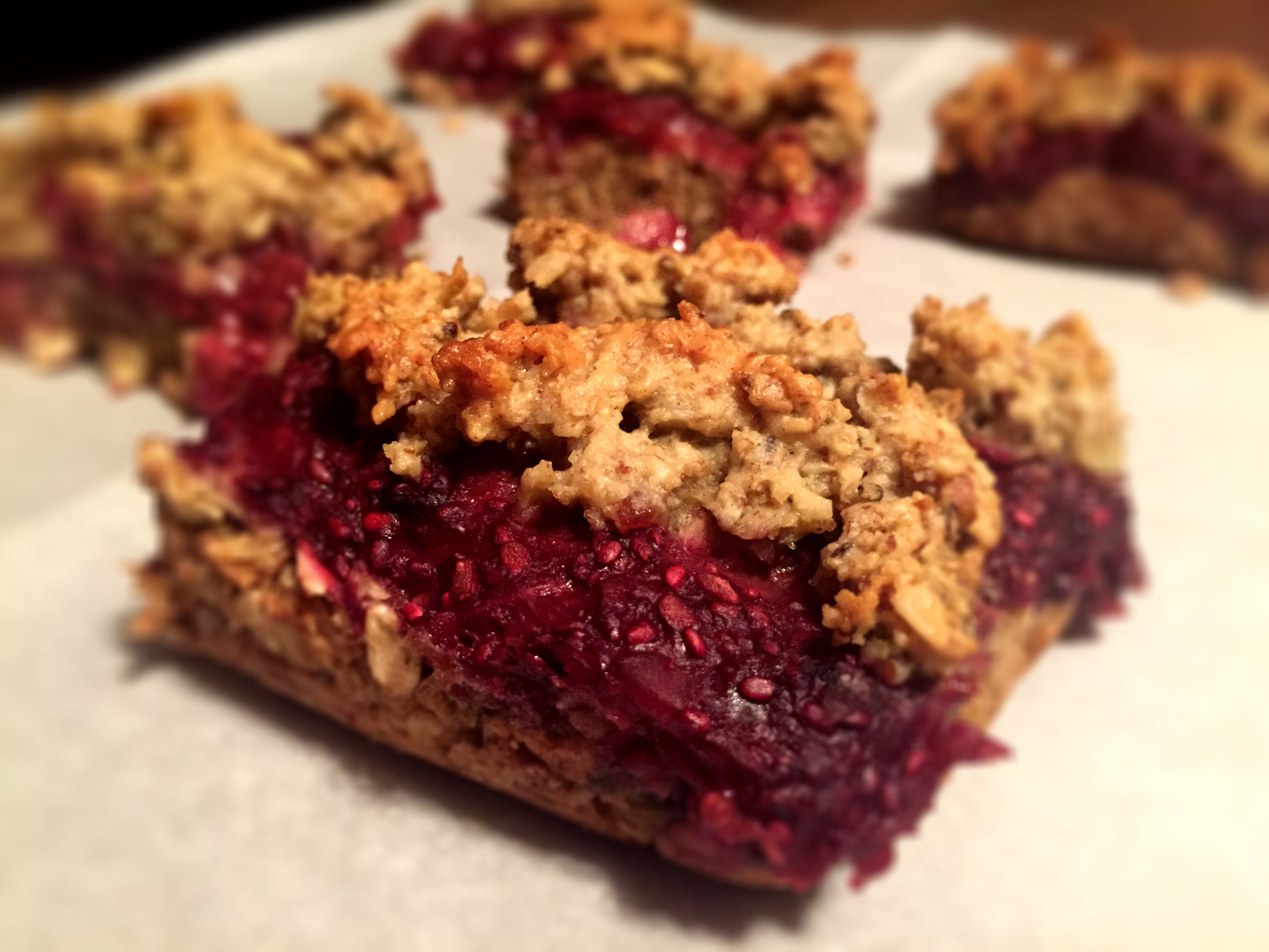 - Take the remaining 1/3 of the oat dough and crumble it evenly on top of the chia jam.