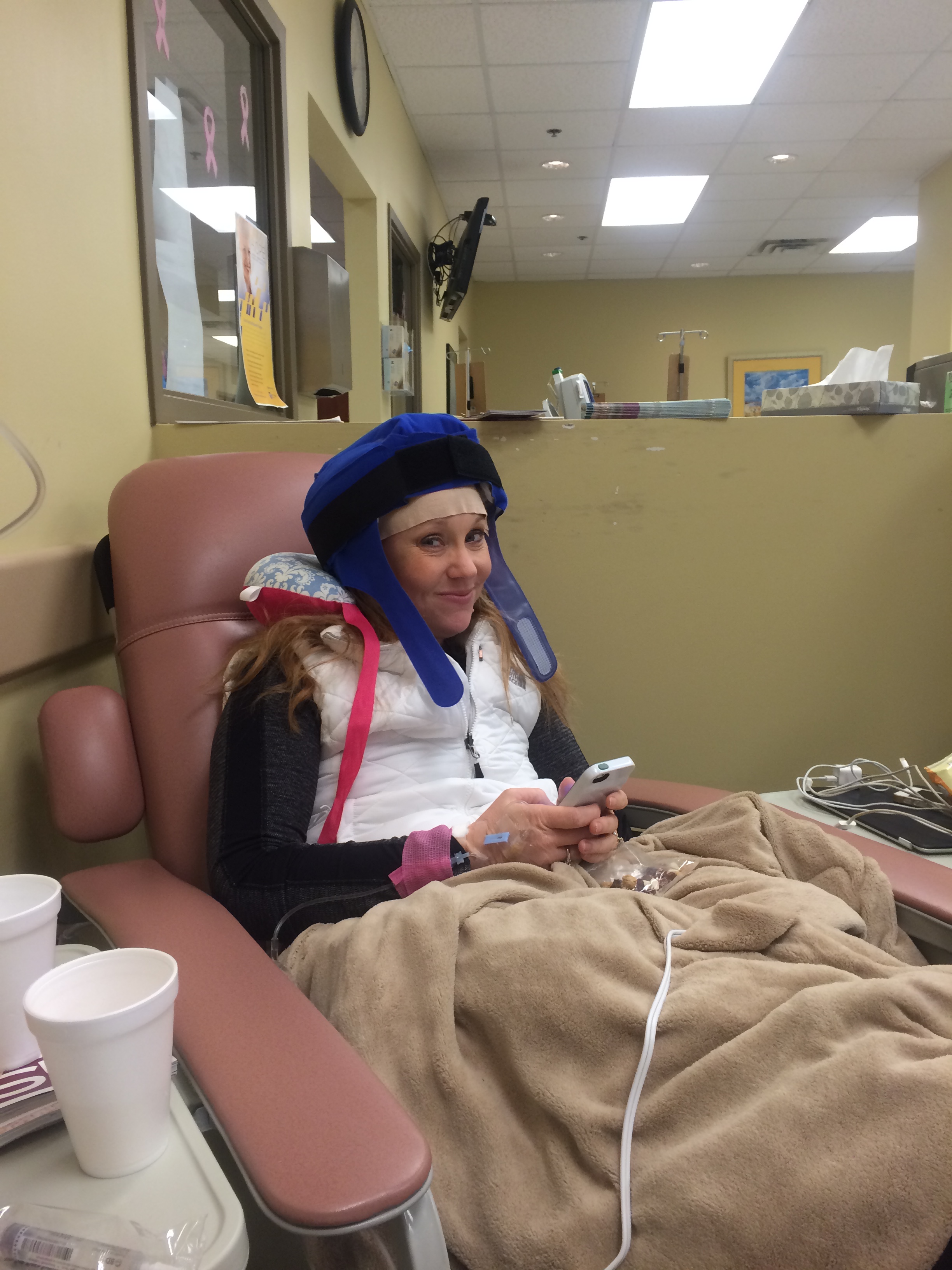 - Losing the hair. I cried over my long red strawberry blonde hair more than my diagnosis. After my surgery, I could cover up the mastectomy but when you lose your hair, it screams to everyone, “I have cancer; I am pitiful; feel sorry for me”. I used Penguin Ice Caps and Ashley Smith (love her!) to save as much hair as I could during the process. No one can make you understand how you feel when hair starts coming out in massive amounts. On day 15, just as predicted, hair starting falling out. Within a week, my sweet husband finally cut it short and I got out the sassy wig that my friends and oldest daughter had help me pick out at Brentwood Wig Shoppe. We named her “Stella” – it helped the kids make light of the situation. In the meantime, as I tried to hold on to my hair, the whole team at Elan Germantown were instrumental in cutting my hair to my chin, picking a wig with me, and giving the wig a trim to fit my face. Thanks to Jacki, Adam and Kayce!