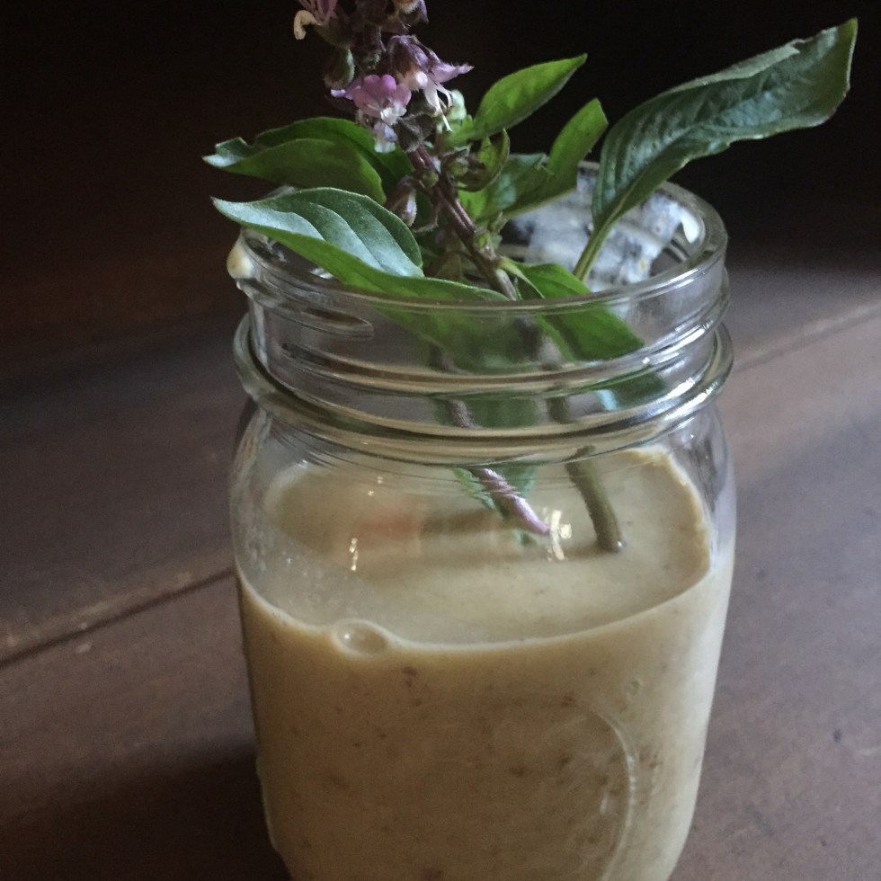 Vegan Banana Peach Cinnamon Basil Protein Smoothie