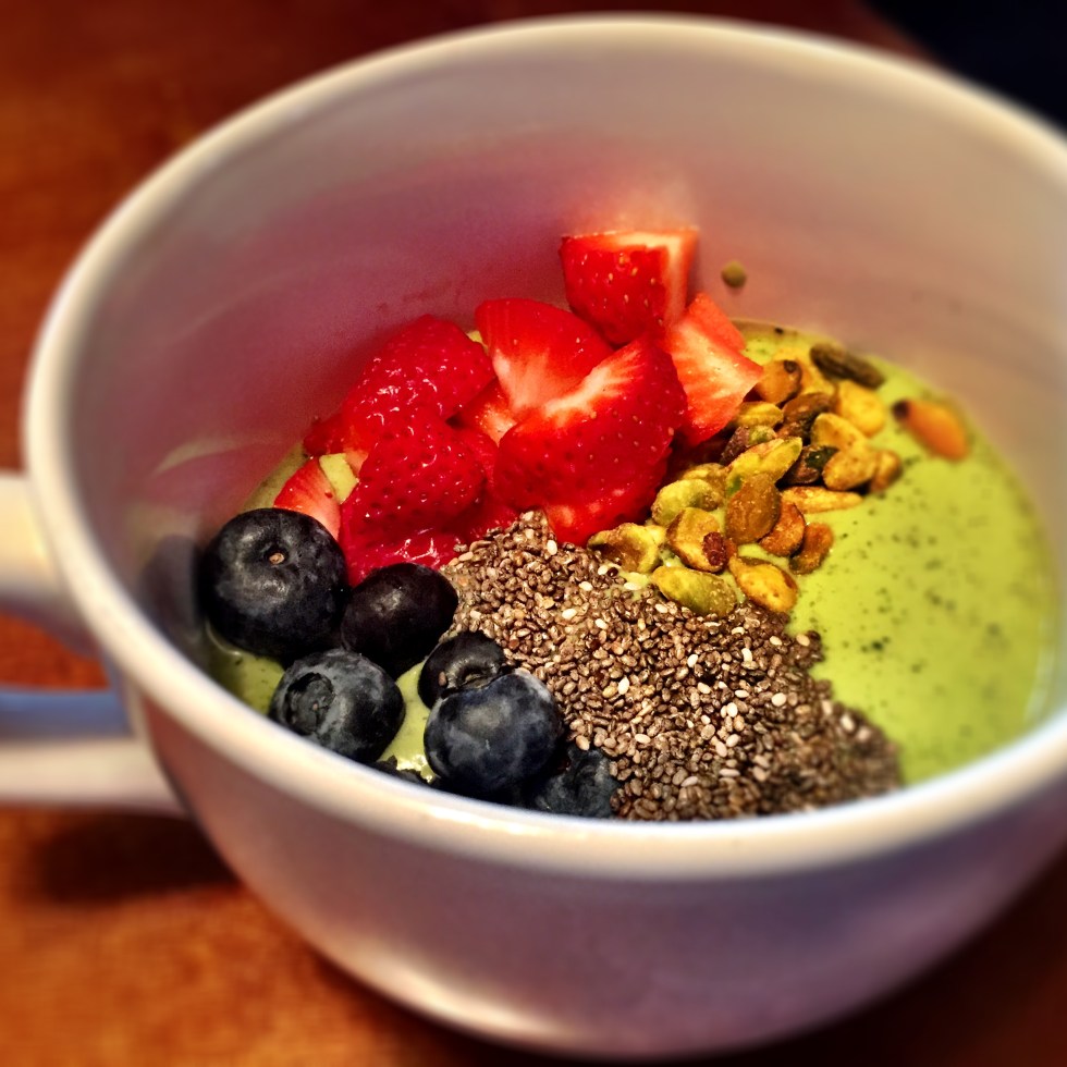 Vegan Banana Peach Cinnamon Basil Protein Smoothie